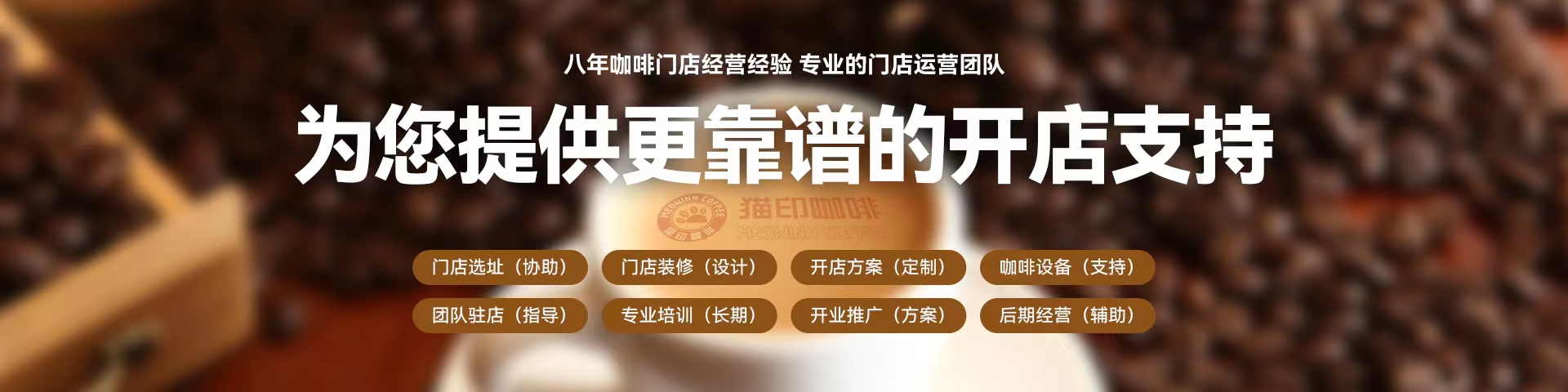 全封闭式开业教育培训、店面定位扶持、新品培训、业绩提升培训、全国加盟商会议、咖啡师等级评定、终身餐品饮品培训体系。